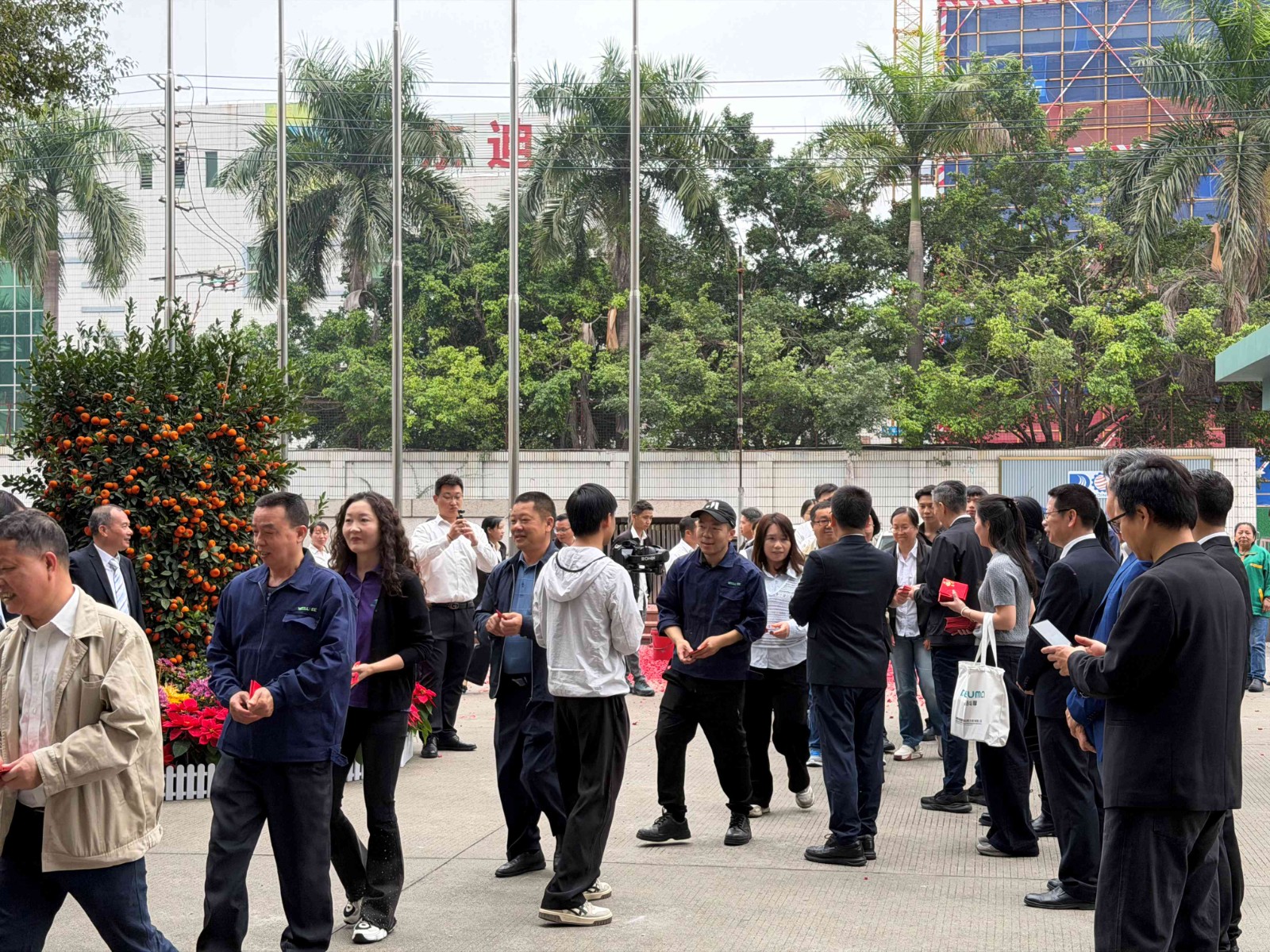 晨光初照,鞭炮声起,红火的开工仪式在两地厂区拉开序幕。大同机械集团行政总裁邓愚先生、注塑机事业部总经理曹小伟先生率管理团队早早列队,手持开工利是,守候在厂区入口。伴随着声声爆竹的喜气,一份份承载着好运与关怀的利是,被亲手传递到每一位返岗同事的手中。